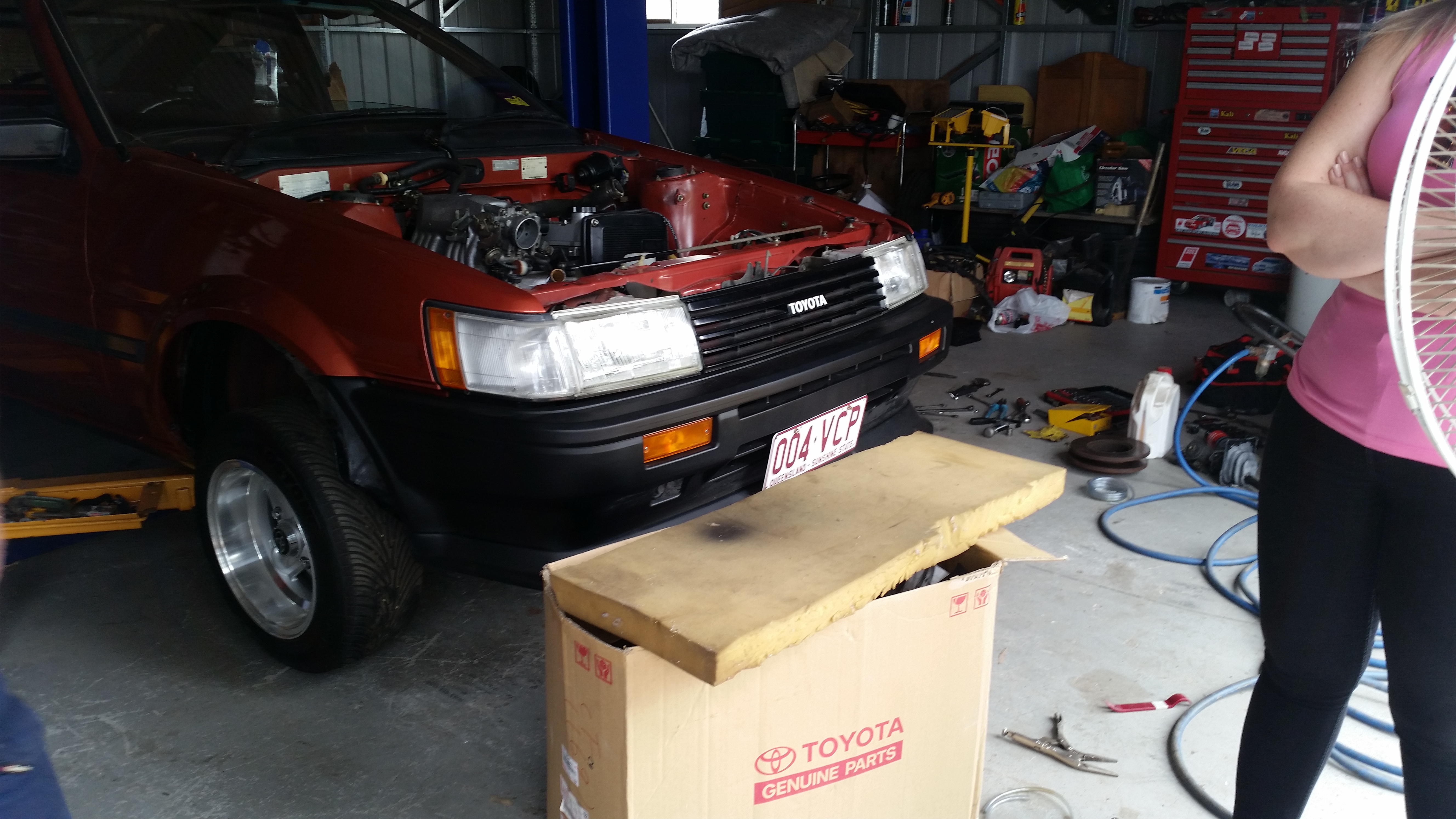 Luckily the 3sgte is a non interference motor. My lovely gf Nicole brought me a belt on Sunday morning, an hour later with some good friends helping me out, and the willy wag tail was once again chirping out on track.